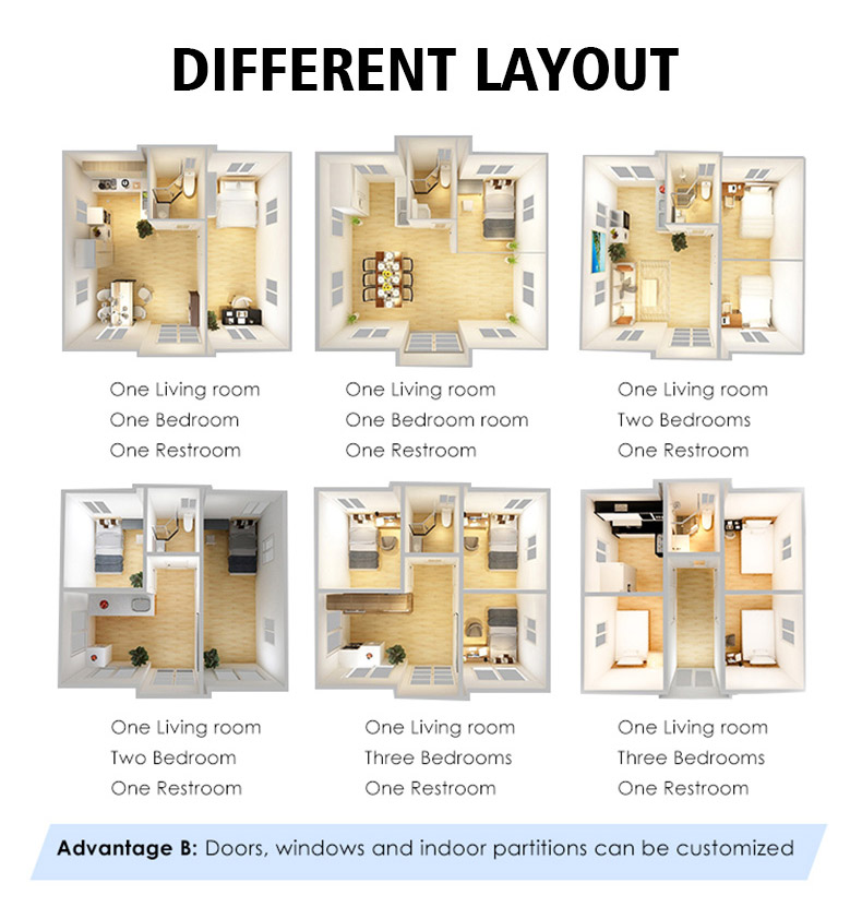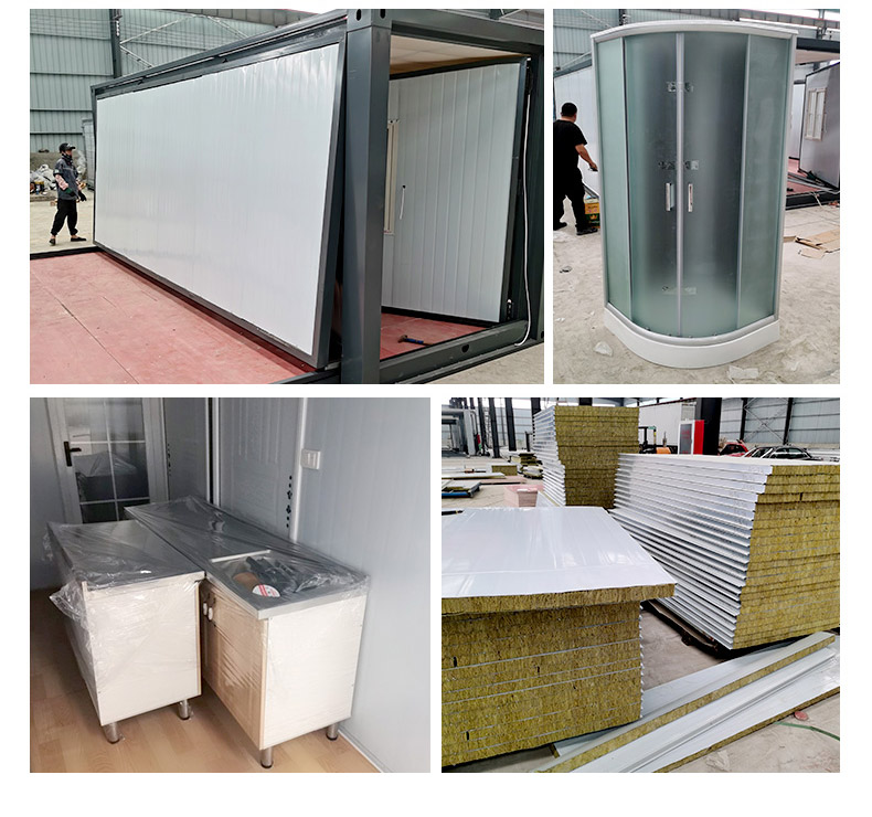 2. Основная конструкция контейнерного дома - легкая конструкция с опорной рамой, верхней рамой и боковыми стенками, хорошей дренажной системой, быстро складывающимися и разбираемыми компонентами.