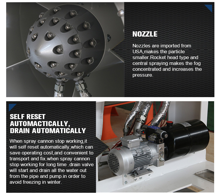 Автоматический распылитель водяного тумана для контроля строительной пыли играет важную роль в распространении тумана в окружающей среде и минимизации пыли. Он стал важным инструментом в различных областях, таких как охрана окружающей среды, сельское хозяйство, лесное хозяйство, борьба с вредителями, угольные склады, рудные склады, шлаковые склады, склады железной руды, разгрузка портов, транспортировка угля, места сноса домов, строительные площадки и т. д. Широкий охват, хорошая проникающая способность, высокая эффективность и высокая скорость распыления этой машины обеспечивают равномерное распределение тумана, позволяя мелким частицам тумана эффективно улавливать пыль при столкновении с ней. Следовательно, распылитель воды Dust Control эффективно помогает контролировать пыль в окружающей среде.